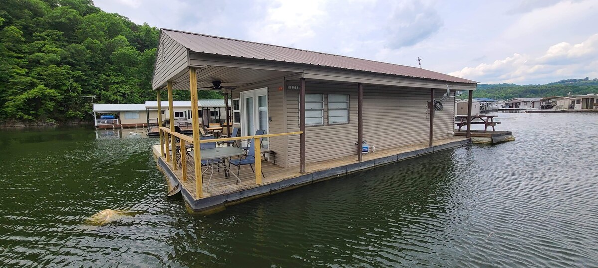 You won’t forget your adorable little “boat house” vaca! THE HOUSE IS FLOATING ON THE WATER & CAN ONLY BE REACHED BY WATER. You must either bring your own boat OR kayak OR rent a pontoon boat. Shore access can be via our SUP/kayaks once at the house. Please note there is no wifi. Lots of room to lay your heads, shower/change, and cook meals. All day water fun outside with kayaks, lily pad, & floats. Located at Powell Valley Marina in LaFolette! QUIET HOURS 10pm-8am