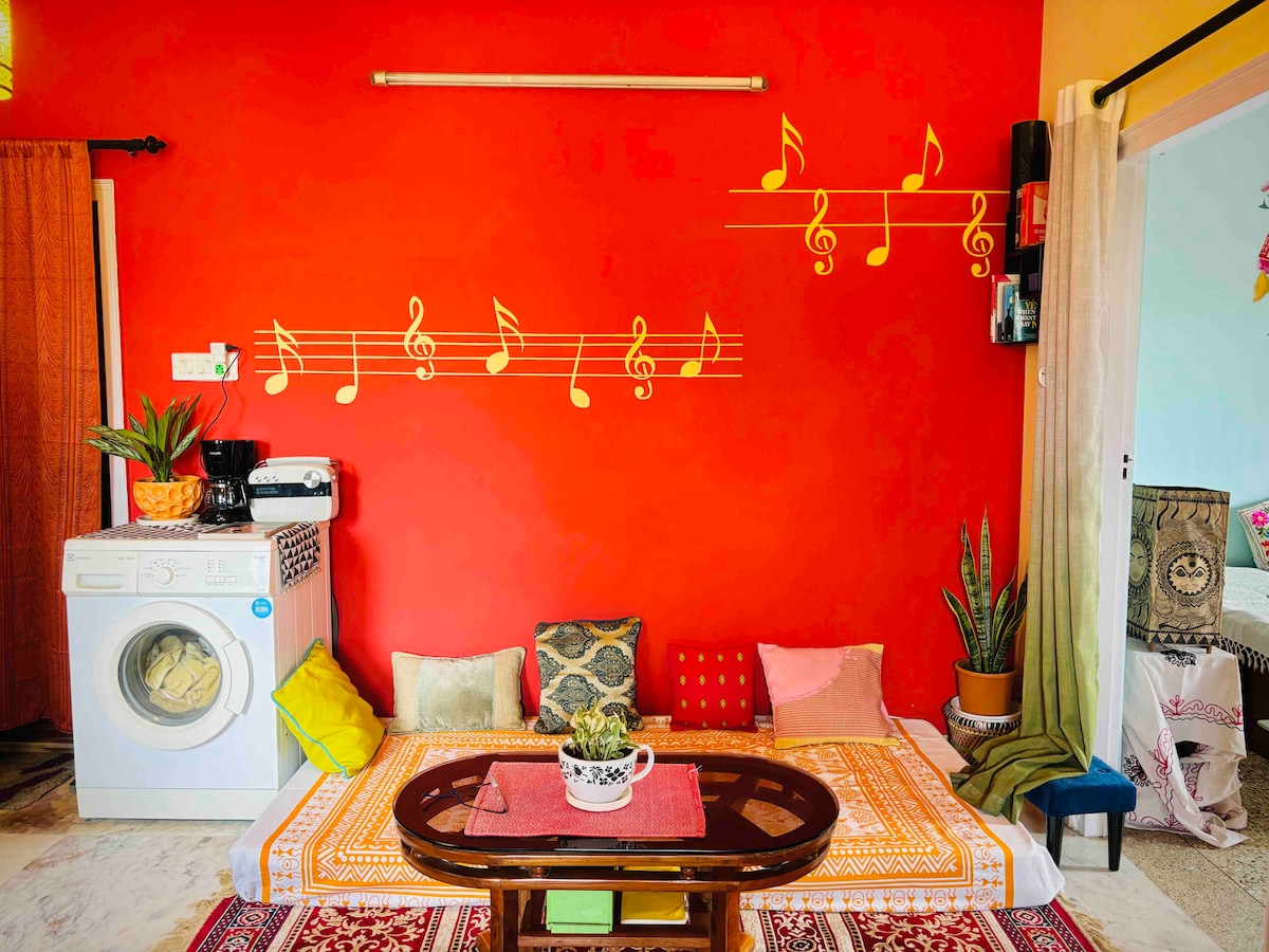 Udobna penthouse garsonjera, primerna za pare, v bližini podzemne železnice Netaji Bivajte v tem prostornem, dobro osvetljenem penthouse garsonjeri v 3. nadstropju rezidence Annapurna, le 4 minute hoje od podzemne železnice Netaji, tržnice in prometnih vozlišč. Kot nalašč za delo ali sprostitev. Vključuje projektor, delovne prostore, masažer za noge, masažo za telo, spa za noge in osnovne potrebščine za fitnes, kot so blazina za jogo, uteži in drog. Mirno zatočišče z vsem sodobnim udobjem.