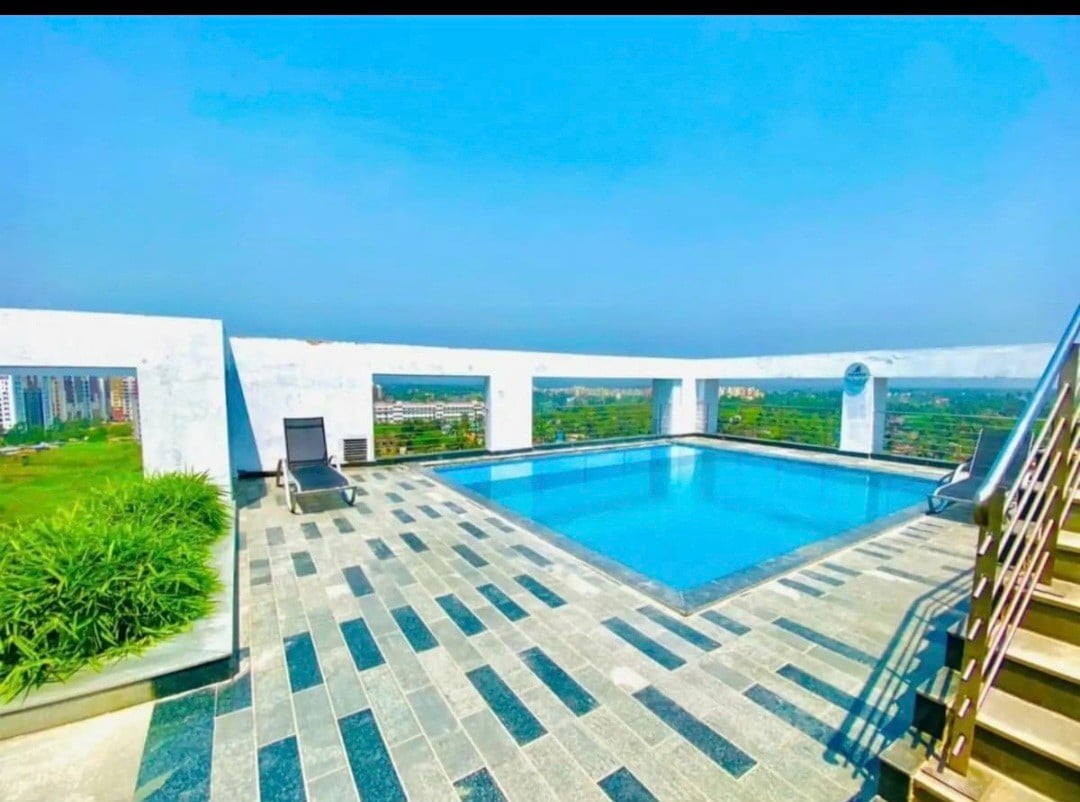 Indulge in luxury at this stylish studio apartment located near the airport and CC2 Mall. Perfect for couples, families, and friends looking for a special getaway. With a high-speed internet of over 100 Mbps, this apartment is also ideal for those working from home. Enjoy access to the on-site pool and gym, and stay connected as the property is well situated near major attractions: 6 km from Kolkata International Airport, 1 km from City Centre II, and 2 km from Eco Park.