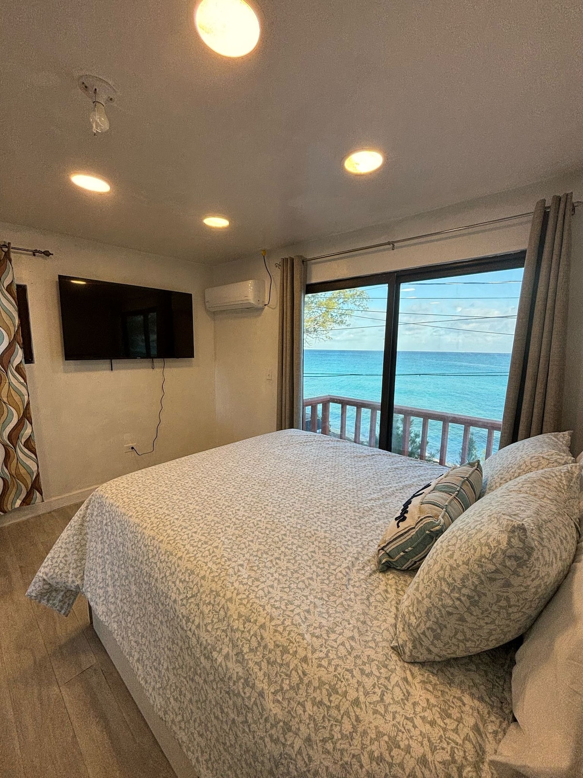 ZGORNJA ENOTA Pobegnite v raj v udobnem garsonjerskem apartmaju na plaži v Bimiju na Bahamih. Idealno za samostojne popotnike ali pare! V ***zgornjem nadstropju*** se nahaja zakonska postelja, kuhinjska niša, jedilnica in zasebni balkon z osupljivim razgledom na sončni zahod. Le nekaj korakov od plaže uživajte v plavanju, sončenju ali sproščanju s priloženimi stoli in brisačami za plažo. Vse, kar potrebujete za sproščujoč in nepozaben oddih na otoku, je prav tukaj!