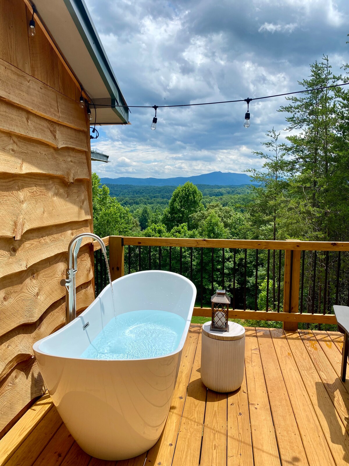 Pogled, zunanja kad, pohodniške poti, 30 min do Ashevillea