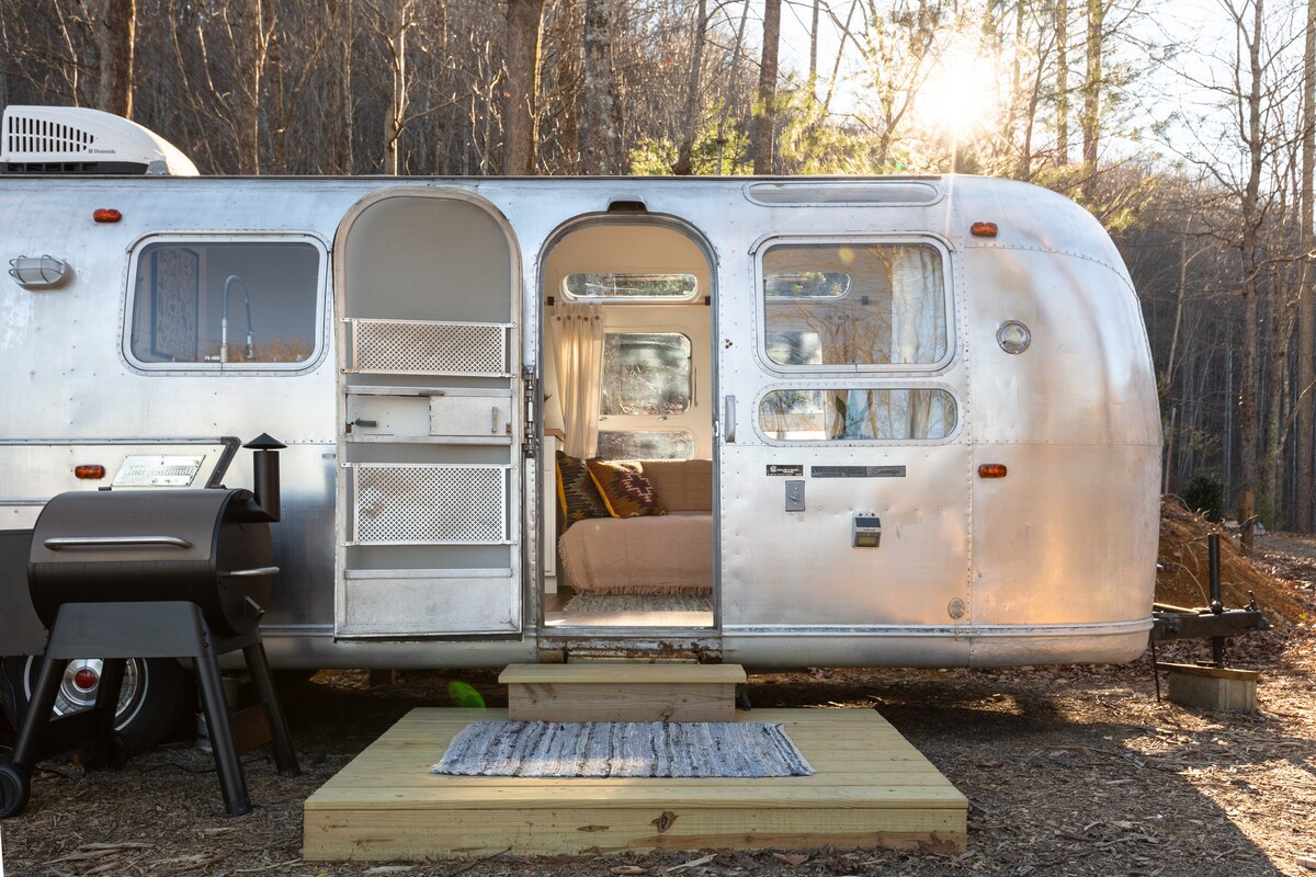 Kot že ime pove, je RhodoDen prijeten Airstream Argosy iz leta 1974, ki se nahaja med rododendronom gorovja Blue Ridge. Nahaja se vzdolž potoka s kresnim obročem in pogledom na bližnji gumb Watch Knob. To je »glamping« v najboljši luči. RhodoDen je na voljo idiličen kraj za sprostitev in je odličen bazni tabor za pohodniške pustolovščine, jedilnico in nočno življenje v Ashevillu in v Črni gori, ki sta oddaljena le 15 minut. Poleg tega smo prijazni do hišnih ljubljenčkov. Posodobitev 24. 3.: zgradili smo streho.