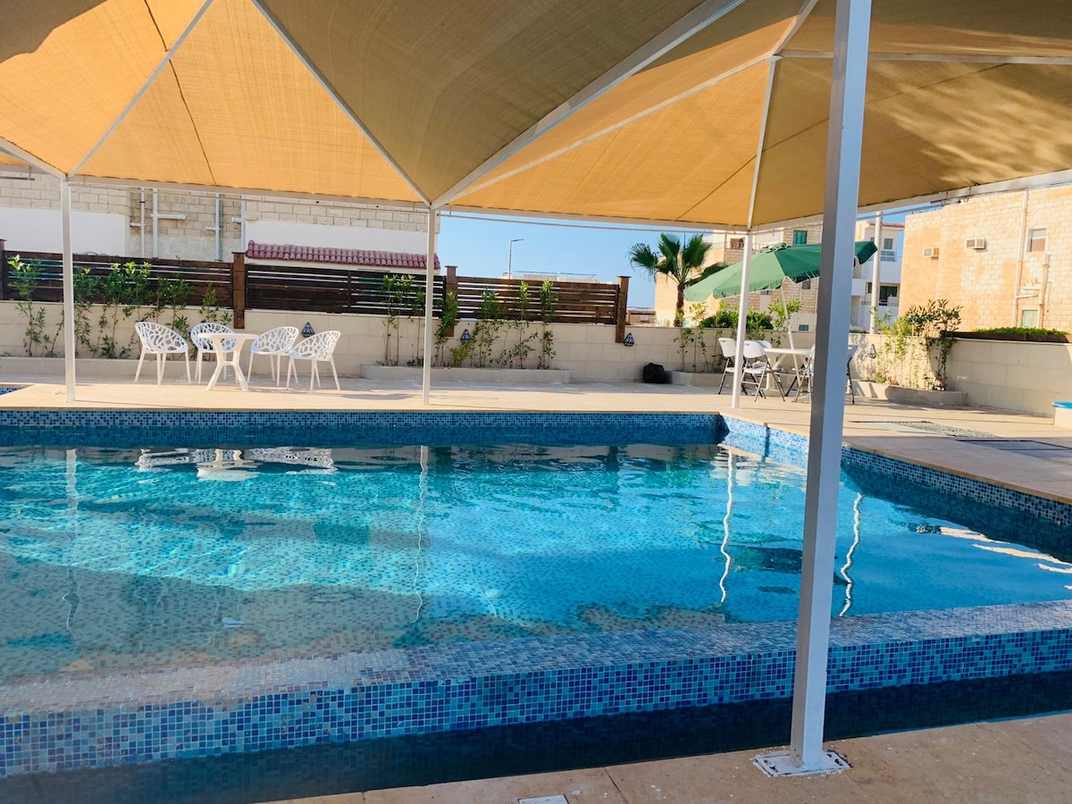 Čudovit, eleganten planinski dom z vrtom v Diamond Beachu. Planinski dom: - 3 sobe z 2 velikima posteljama - Dnevna soba z raztegljivim kavčem - Ameriška kuhinja - 2 kopalnici - Orodja za vrt in žar - Wi-Fi in pametna televizija ** Tri sobe so klimatizirane, dnevna soba z ventilatorji ** Diamond Beach Village: - 5 bazenov - Plaža z jedilnico - Otroški prostor - Billiardo - Namizni tenis - Play Station - vozički za plažo in kolesa - KFC - Pizzahut - Supermarket Bim - NBE bankomat 15 minut do marine 10 minut do Zahrana 25 minut do sprehoda Stella