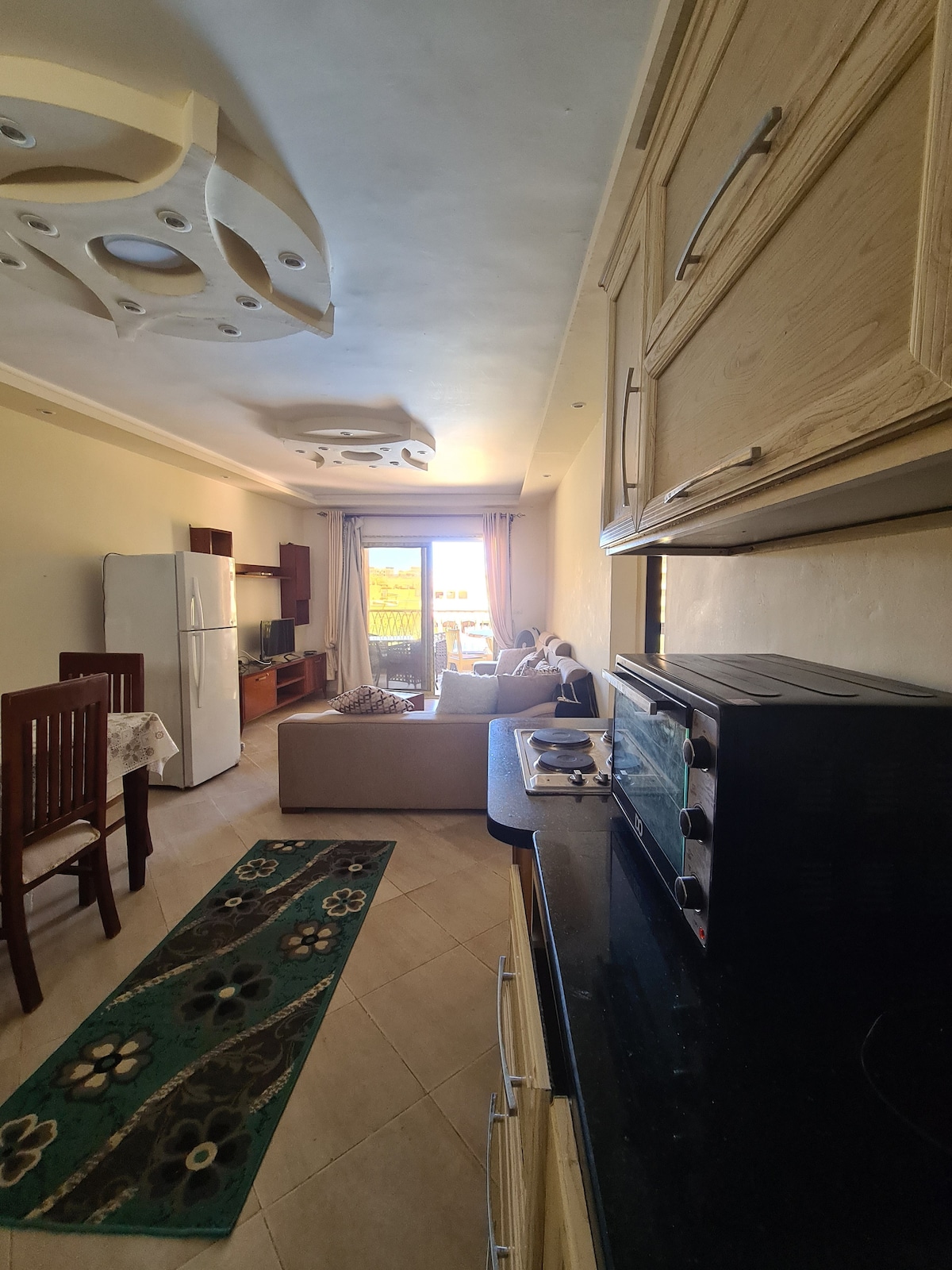 Two bedroom pool view challet at Green Leaves Village north coast k 75 , the village as all facilities i.e. different pools, day and night activities, aqua park, white sand beach, 2 supermarket, clinic, pizza Sh.,bike /scooters/ golf cars shop, different cafes on the beach same as inside the central area. Challet je skoraj popolnoma nov. 1 min do središča mesta s hojo in 5 minut do morja s hojo. Challet is bahary pomeni, da boste klimatsko napravo komaj potrebovali tudi zjutraj :)