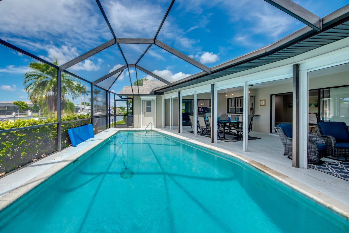 Sprostite se na sončnem jugozahodu Floride, v bližini veličastnih plaž, ribolova, luščenja, spomladanskega treninga dvojčkov v Minnesoti in še veliko več. Uživajte v tem novem gradbenem prenočišču z ogrevanim bazenom, kajaki, ogrevano in ohlajeno igralnico (PlayStation 5), dostopom do zaliva - kanal s slano vodo, televizorji 4k oled in še veliko drugo osvežujočo opremo. Všeč vam bo to čisto in svetlo prenočišče z lepim dekorjem. Nahaja se v zelo iskani soseski Pelikan v jugozahodnem Cape Coralu.