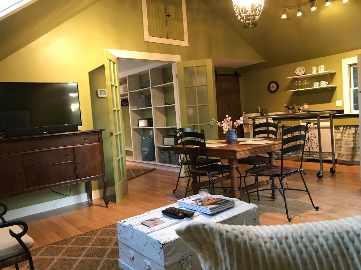 Old Souls Farm/Linden Lane Permaculture is an urban organic farm-garden a short walk from the bustling downtown harbor of Camden, Maine. The new (2021) loft apartment is clean, comfortable, with lots of amenities, including guest wifi and laundry. The neighborhood is quiet, wooded, historic. As a guest you’ll be in the midst of our organic gardens, orchards, and meadows, and can request a site tour. Nearby: Camden State Park, Laite Beach, and famous Aldermere Farm. You’ll love staying here.