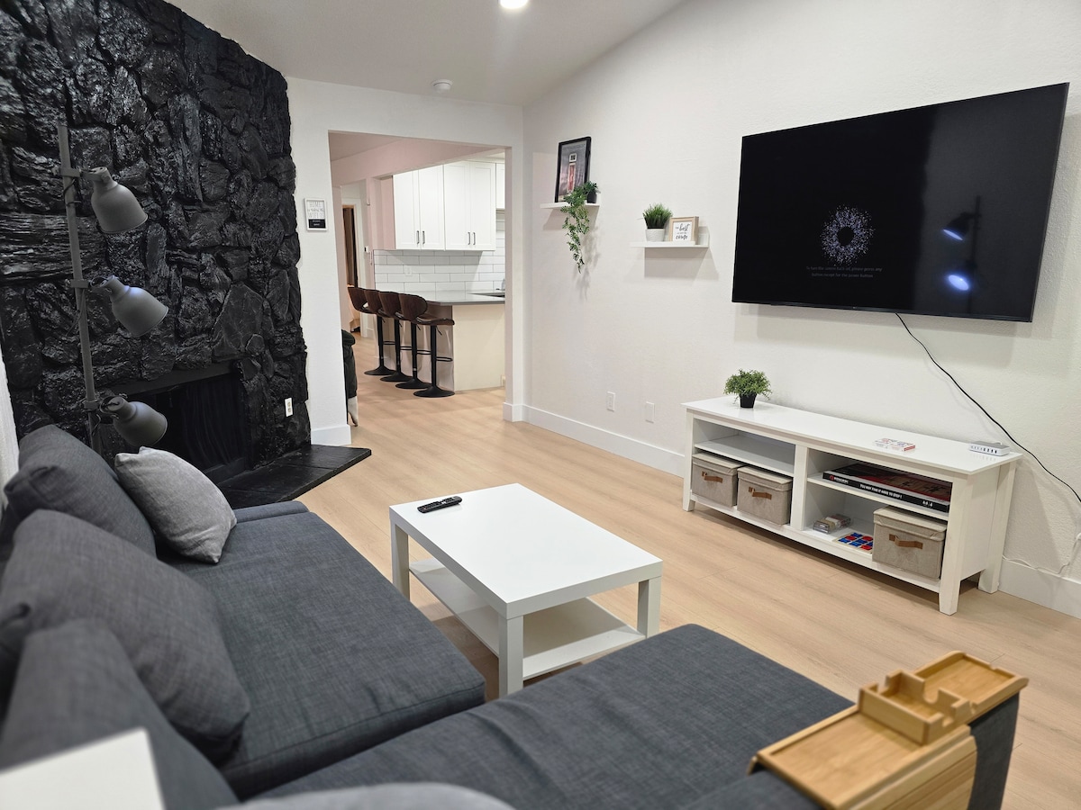 Stay at our peaceful home located in Foothill Farms area in Sacramento! Near to I 80 Fwy and less than 20min away from Hospitals and Malls. Target & Walmart and variety of restaurants (In-n-Out, Chick-fil-A, Sushi, etc) 13mi/20min from Sac Airport Provided is a remodeled 2 bed 1 bath duplex, w/ spacious living and bedrooms. New kitchen and dining area. Living room has a comfortable couch, 55” smart tv and bright ambiance. Room 1 King Puffy luxe mattress Room 2 Queen firm mattress, work space