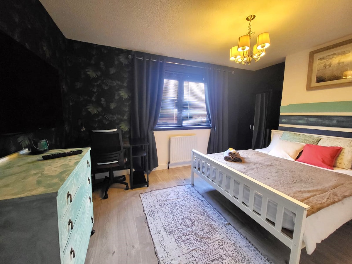 👋🏼 Dobrodošli v Woodlands Flat Falkirk, ki se nahaja v središču mesta z velikim brezplačnim parkiriščem v sklopu prenočišča. 🚂Nekaj minut hoje do železniške postaje Falkirk High, da si olajšate obisk Glasgowa in Edinburga. 💻 Zelo hiter Wi-Fi in prostorne sobe. Stanovanje vključuje 🛁 dve kopalnici stanovanje v ⬆️ prvem nadstropju Soba 1 - dvoposteljna soba z lastno kopalnico Soba 2 - dve enojni postelji Velika dnevna soba z jedilno mizo in novim pametnim televizorjem, ki olajša pretočno predvajanje. Vhod v stanovanje je varen, vhodna vrata pa imajo kamero z zvoncem
