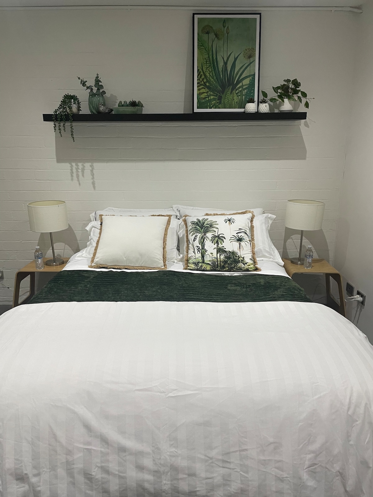 Samostojno studio stanovanje, dostopno po tlakovanem pasu. Gre za zasebni studio z lastno kopalnico, kuhinjo, verando in prostorom za sedenje/televizijo. Dostop je mogoč z zadnje strani dolge viktorijanske terase in se nahaja v prvem nadstropju. Je nov, sodoben, ima veliko svetlobe, stekla in oken, vendar je tudi precej zaseben - z motnim steklom in pogledom na vrt. Tema je »motivacijsko, domače in spodbudno«.» Garsonjera je vaša z vsemi brisačami in opremo.