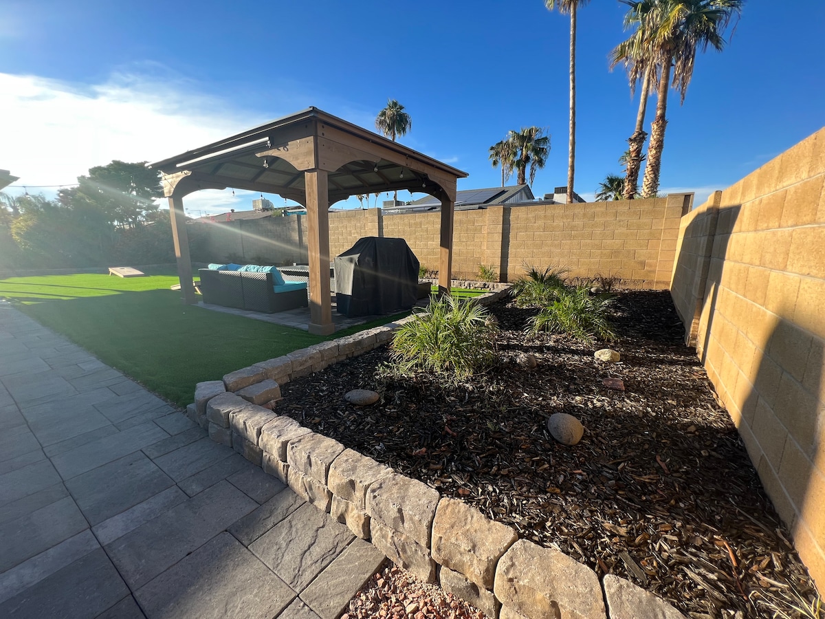Dobrodošli v Skriti Haciendi Scottsdale! Zabavno, nenavadno zatočišče s kavbojsko elegantno dekoracijo, bazenom, spa centrom, karaokami in igrami - kot nalašč za dekliščine, družine ali izlete na golf. Za 10 oseb z udobnimi posteljami, pametnimi televizorji, biljardno mizo in popolnoma opremljeno kuhinjo. Sprostite se pod nihajočimi palmami, vadite gugalnico na mini zelenici ali pa se sprostite v zasebni oazi na dvorišču z udobnim ognjiščem in zunanjo televizijo. Minute do Kierland Commonsa, vrhunskih igrišč za golf, spomladanskega treninga in še več!