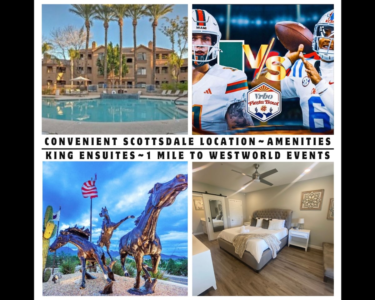 💛 Sprehodite se do trgovskih centrov Kierland Commons in Scottsdale Quarter 🍽️ – več kot 50 restavracij, trgovin in nočnih klubov je le nekaj korakov stran (prihranite pri najemu avtomobila!). 🏊 Ogrevan bazen + kabine. 💪 24/7 telovadnica + joga/spin. 🏌️♂️ <2 milj do TPC Scottsdale + blizu 3 glavnih igrišč za golf ⛳. ⛰️ Pohojevanje v bližini. 🛏️ Zakonska postelja + zatemnitvene zavese. 📶 Wi-Fi s hitrostjo 500 Mb/s in delovni prostor. 🔑 Enostaven samostojni vstop. 🎉 Staro mestno jedro ~20 min. ✈️ Letališče ~23 min. Če ste prizadeti zaradi odpovedi Sonderja, nam pred rezervacijo pošljite sporočilo za dodaten 10 % popust. Palacio Properties