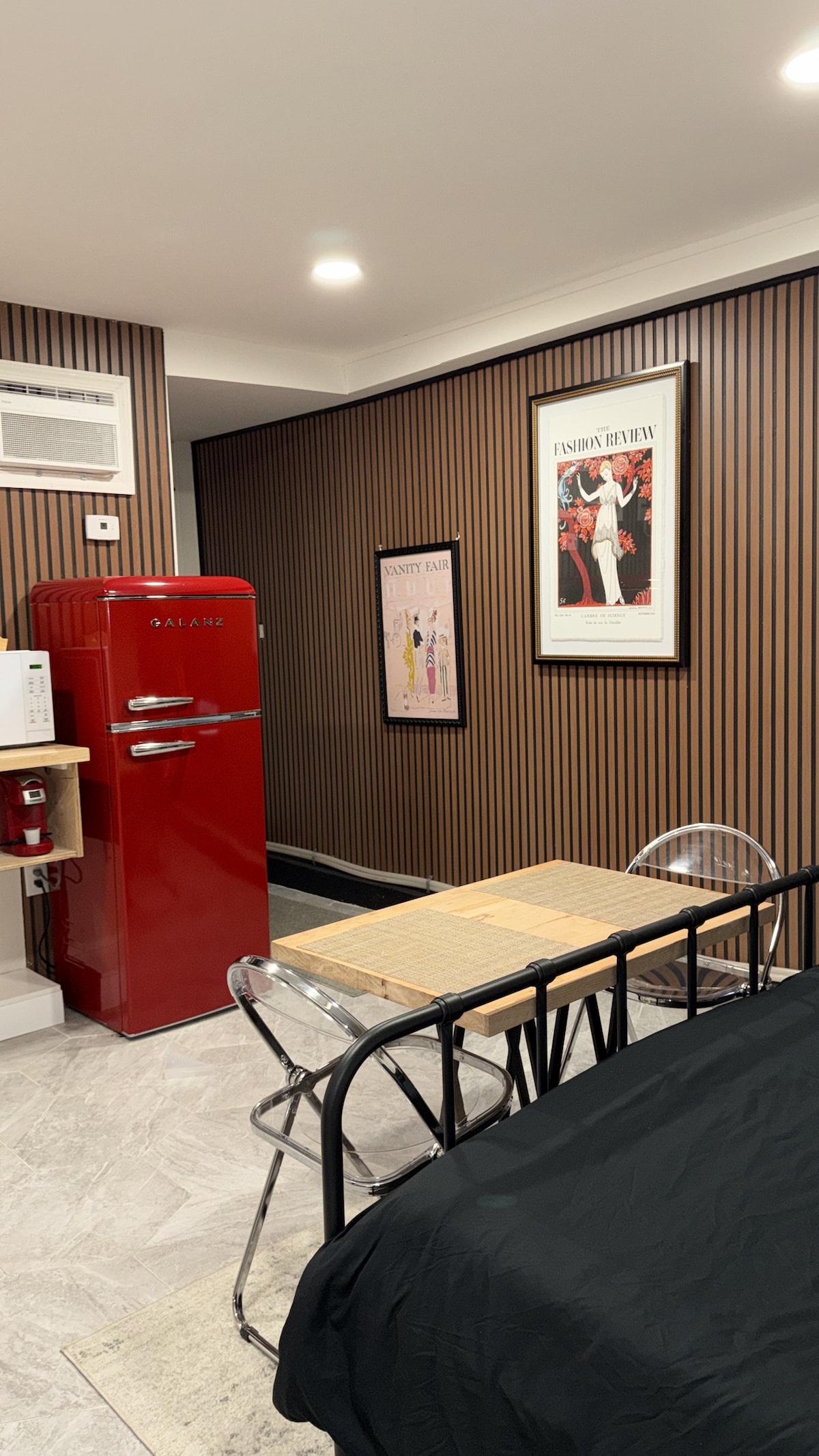 Its coziness will make you feel at home the second you step in. This cute ground floor 280 sq ft Tiny Guest Suite is Fully furnished and nicely decorated - it comes with anything you can possibly imagine. It consist of 1 bedroom 1 bathroom & a kitchen/dining/living room area Rooms' sizes: Bedroom: 10ft x 7 1/2ft LR kitchen DR area: 19ft x 10ft Bath: 40" x 80" Given how close it is from everything - It is perfect for guests who plan on commuting to the city by train or move around by Uber.