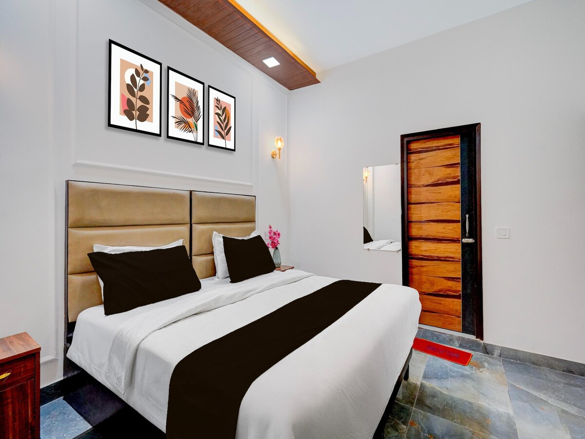 Butična namestitev Boho Chic s sedežem v vasi Hauz Khas - South Delhi Popolna mešanica sodobnega življenjskega standarda s skandinavskim dizajnom in vzdušjem. Naš apartma Luxe King nudi sproščen prostor za počitek, udobno in udobno zakonsko posteljo, kopalnico, pisalno mizo, jedilno delovno mizo in odprto garderobo. Oprema - pametna televizija, mini-hladilnik, aparat za pripravo čaja/kave, vrhunske toaletne potrebščine, dodatni zajtrk in lokalni ogledi. Imamo kavarno v hiši in streho za sprostitev.