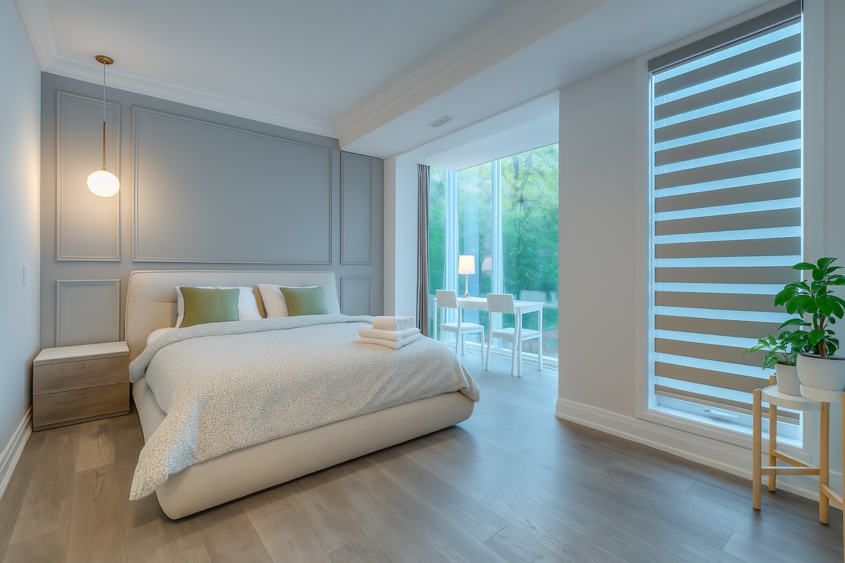 Ime spalnice YORK Prenovljena, elegantna hiša za goste, ki zahtevajo kratkotrajno ali nekoliko daljše bivanje v Torontu. Ta zasebna spalnica ima zakonsko posteljo (Queen) s 55-palčnim pametnim televizorjem za vaš užitek ob gledanju. Vključujemo tudi teraso, ki je dostopna za žar in ležanje na dvorišču. BREZPLAČEN 1 GB WI-FI, NETFLIX, LUKSUZNA PRHA, SPREHOD DO BALKONA