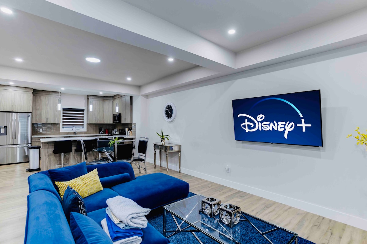 Step into this vibrant basement suite, where art, comfort, and entertainment create an unforgettable stay. Just a 5-minute walk to nearby Mall with groceries, restaurants, and more. Ideal for families, fully stocked for long stays, and only 15 min 🚗 to downtown. ✔ Themed rooms w/murals 🎨 ✔ Fully stocked coffee bar ☕ ✔ Fireplaces 🔥 ✔ Rooms w/KING beds & Smart TVs 🛏️ ✔ Board games 🎲 ✔ Musical instruments 🎶 ✔ Prime location for city access 🌆 Book now to make your Edmonton stay memorable!