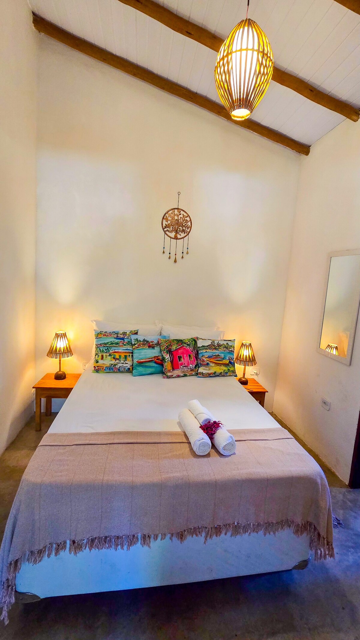 Gre za miren in eleganten prostor, 200 metrov od plaže, sredi domače vegetacije. Prijazni smo do skupnosti LGBTQIAP+ in ker smo oddaljeni od jedra skupnosti, uživamo v tišini in miru, vendar pet minut stran od vrveža! Apartma s pogledom na drevesa je zagotovilo za počitek. Kuhinja s stropom piaçava je čudovita in pripravljena na vse potrebno. Kopalnica ima zasebne prostore, ki zagotavljajo vašo intimnost. Sprostite se v tem bivališču. Všeč vam bo.
