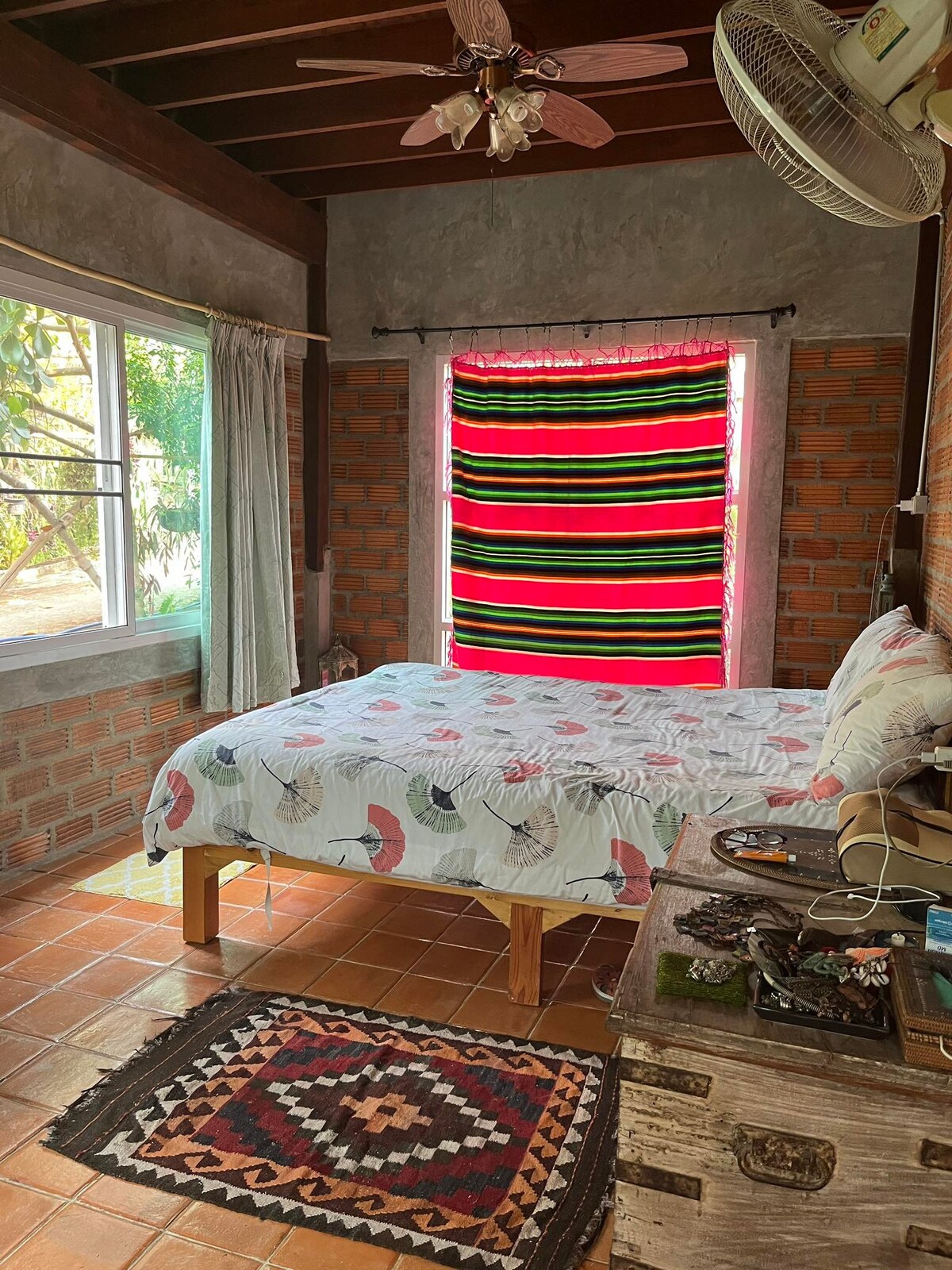 Sprejmite goste v čudovitem in mirnem Paiju. Menimo, da je naš prostor idealen za tiste, ki iščejo miren prostor za počitek ali delo. Naša namestitev je polna dreves pod prazno tradicionalno tajsko hišo iz tikovine. Prostor vključuje udobno posteljo za največ 2 gosta in kavč s tremi sedeži, ki ga lahko uporabite za dodatnega gosta. Zunaj sobe boste imeli velik skupni prostor z jedilno mizo in prostori za sprostitev. Prenočišče je od centra mesta oddaljeno 5 minut vožnje z motorjem.