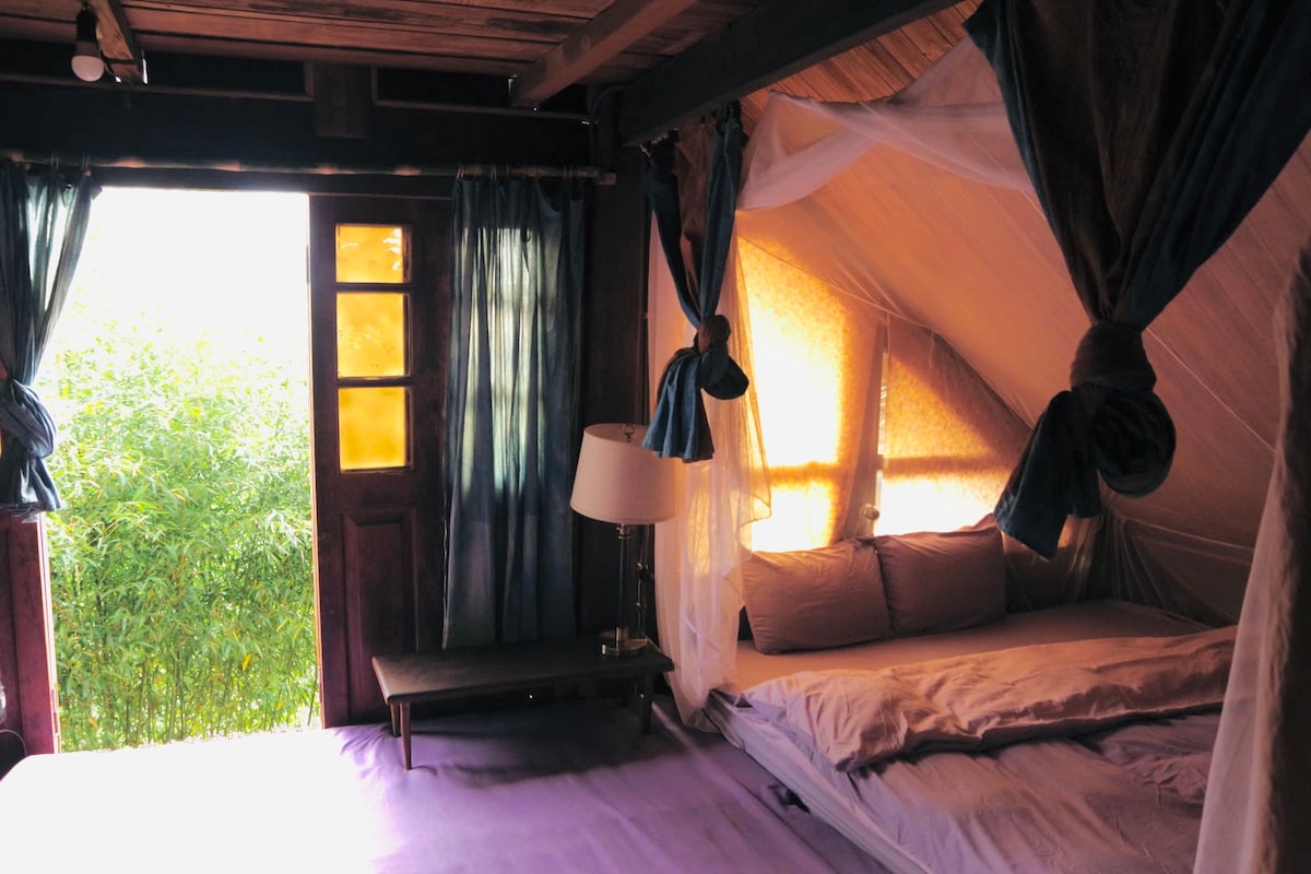 “Walk You Home” is a story of Love and Soul Connection inspired by the Beauty of Nature and the culture of The Hmong community. It concepted for a sustainable forest retreat and eco-friendly lifestyle. "Walk you home" is suistable for a get away holiday of a group of Friends or the Family. This houe is a traditional style Hmong chalet within the vintage Hmong and Dao Batik Textile for Home decore.