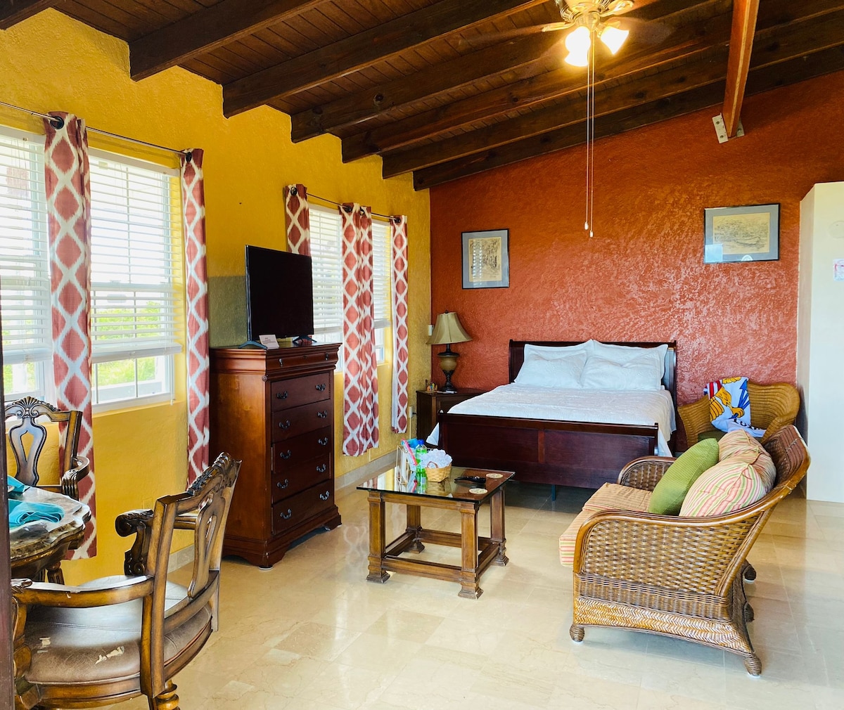 Čudovito urejena velika garsonjera s spektakularnim razgledom na plažo Magens Bay, Peterborg Point in še dlje v Atlantski ocean. Sprostite se lahko na terasi in ne samo uživate v razgledu, ampak tudi v hladnem vetriču in čudovitem sončnem zahodu. Ni klimatske naprave, samo talni in stropni ventilator.