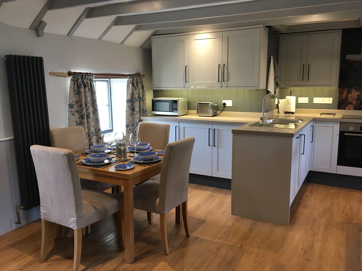Značilna samostojna nastanitev, ki ponuja dve spalnici in dve sobi s prho v čudoviti hiški na deželi iz 17. stoletja. VisitScotland s 4 zvezdicami. Glavna spalnica z zakonsko posteljo z zadrgo (lahko je tudi dvojna postelja) in kopalnico s prho. Druga spalnica z zakonsko posteljo (King) in zasebno kopalnico s prho. Imeli boste tudi svoj udoben bivalni prostor s štedilnikom na drva in popolnoma opremljeno kuhinjo s pomivalnim strojem, hladilnikom/zamrzovalnikom in pralnico.