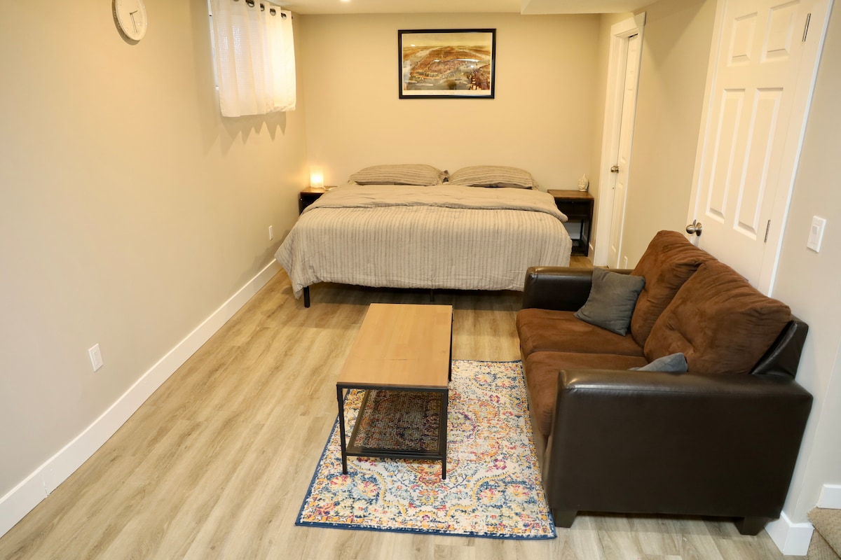 Lepa, svetla, sodobna, legalna/registrirana kletna suita z zasebnim vhodom v Montgomeryju. Minute od Foothills in otroških bolnišnic, Univerze v Calgaryju, tržnega nakupovalnega središča, parkov Shouldice in Edworthy ter rečnih poti in parkov za pse. 10-15 minut vožnje do središča Calgaryja in hiter oddih na zahodu za pustolovščino v Rocky Mountain. Sodobna dnevna soba in kuhinja odprtega tlorisa. Pralni in sušilni stroj v sobi. Hišni ljubljenčki so dobrodošli z doplačilom (25 USD kanadskih)
