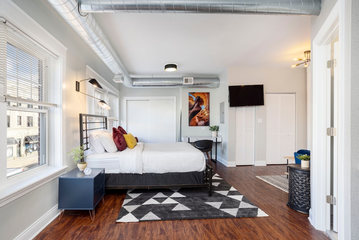 Ta nova sodobna enota se nahaja v West Loganu, eni najbolj zanimivih sosesk v Chicagu. Blizu javnega prevoza, 2 ulici stran od rekreacijske poti 606 Bloomingdale in nekaj minut stran od najboljših restavracij in barov v mestu! Wi-Fi, televizor z velikim zaslonom in pretočnimi kanali, pralni/sušilni stroj, kuhinjska niša, mini hladilnik, kava/čaj, družabne igre, brezplačno parkiranje na ulici. Ta posebej zasnovani in prenovljeni prostor vam bo všeč!