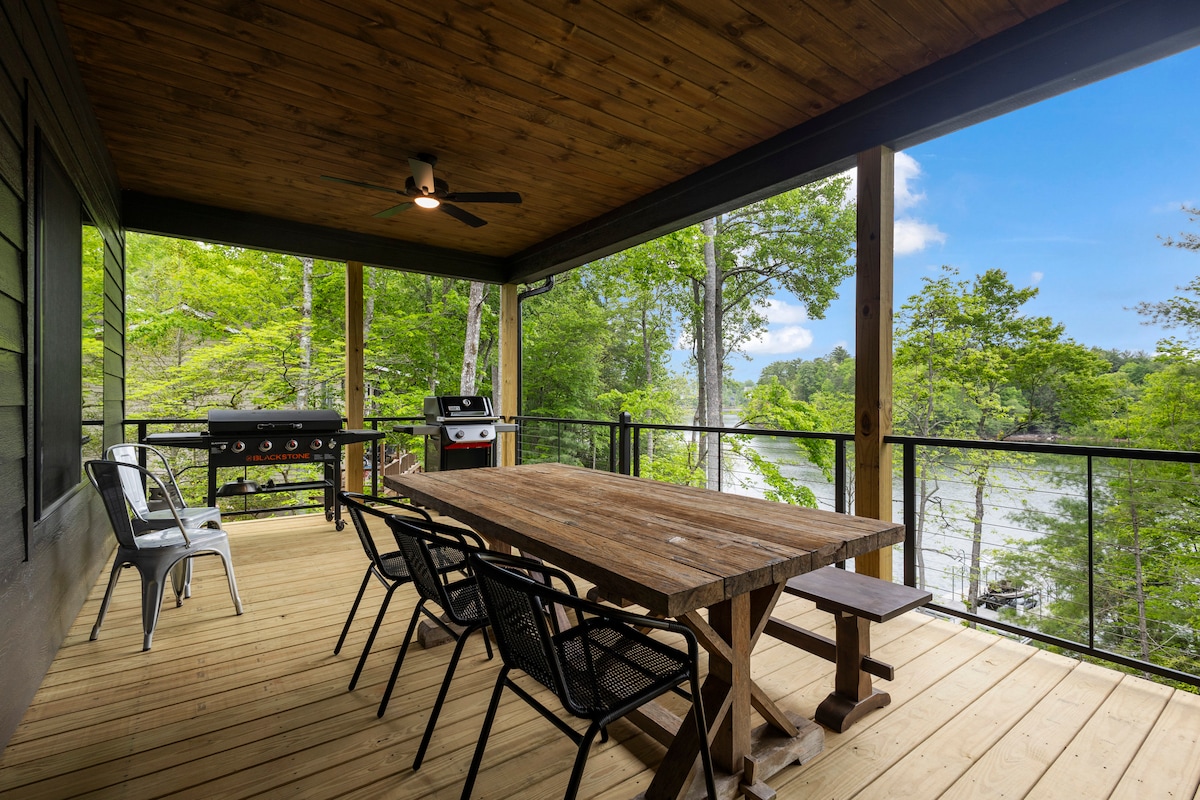 @MountainLakeBeach predstavlja našo priljubljeno kočo na jezeru Nottely s čudovitim pogledom na gore in celoletno globoko vodo. Čudovito prenovljena hiška na deželi ob jezeru s površino 2000 kvadratnih metrov ima 3 spalnice in 3 kopalnice z WC-jem, v katerih lahko spi do 8 oseb (največ 6 odraslih), in je primerna za pse. Zagotavljamo plinski žar Weber, popolnoma opremljeno kuhinjo, posteljnino in posteljnino, TV z ravnim zaslonom, hiter Wi-Fi in sezonske vodne igrače (2 tandemska kajaka, 2 deski za veslanje in blazinica z lilijami, - čoln NI vključen) *pohištvo in posteljnina se lahko spremenita