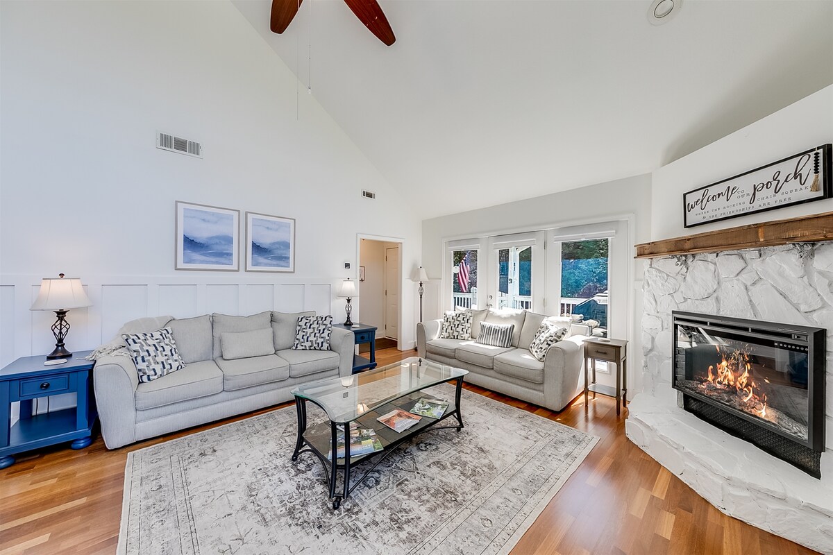 Dvonadstropna tipična koča ob potoku z rustikalno toplino, dopolnjena s sodobnim in vrhunskim pridihom. Odprt koncept bivanja z drsnimi steklenimi vrati, ki se odpirajo na veliko okroglo verando s pogledom na bujne travnike, živahni potok, veliko ognjišče vzdolž vodnih bregov in zasebno masažno kad. Opremljen s polnilnikom za električna vozila 2. stopnje. Mirna ograjena skupnost in le nekaj minut do središča Blue Ridgea, jezera Blue Ridge in jezera Nottely, dobrodošli v »The Brook!» Bivajte nekaj časa.