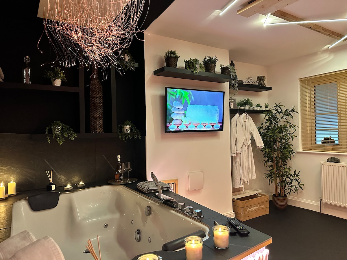 Obiščite London z lastnim zasebnim spa centrom! 5 minut hoje od podzemne postaje - 30 minut do mestnega središča. Dvojna jacuzzi kopel za romantičen čas s svojo ljubezensko kopeljo in oblikovana za dve savni z opremo za aromaterapijo. 42-palčni televizor za kopel in savno. Spalnica je zasnovana tako, da ustreza vsem, kar potrebujete kot par, da preživite popoln čas skupaj. Na voljo je 7:1 Cinema System with top spec speaker located for dolby surround and 72" screen +4K Smart Projector. Popolnoma opremljeno za nepozabno bivanje+ ;)