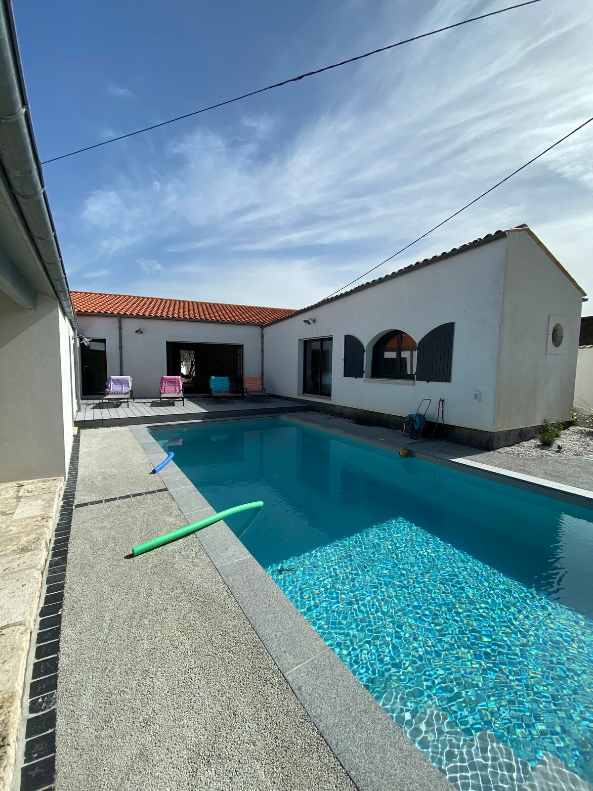 Ta čudovita in svetla popolnoma prenovljena vila Charentaise vas bo zapeljala s svojimi čudovitimi količinami in urejenimi storitvami. Nahaja se v Saint Pierre d 'Oléron, tih, ob vznožju kolesarskih poti in v bližini trgovin, središča mesta in pokrite tržnice (3 min). Pristanišče La Cotinière in njegove plaže so oddaljene 10 minut. Ta hiša je edinstveno, udobno in mirno bivališče. Bazen je zavarovan. Ograjeno tla. Rjuhe in brisače so na voljo za več kot 7 nočitev.