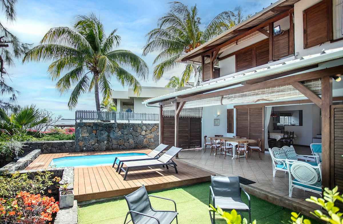 8 minut od letališča (idealno za odhode/prihode) Naš prostor je prvotno zasnovan in nudi prijetno vzdušje. To je povabilo za cocooning. Ta osupljiva vila, ki je obrnjena proti laguni, z izjemnim razgledom na morje, sončnim vzhodom za tiste, ki se zgodaj zbudijo, in tudi javno plažo, bo ta osupljiva vila sprejela do 6 oseb v 3 spalnicah in zasebnem bazenu. Medtem ko ste mirni, odkrijte čar Mavricija in se sprostite.