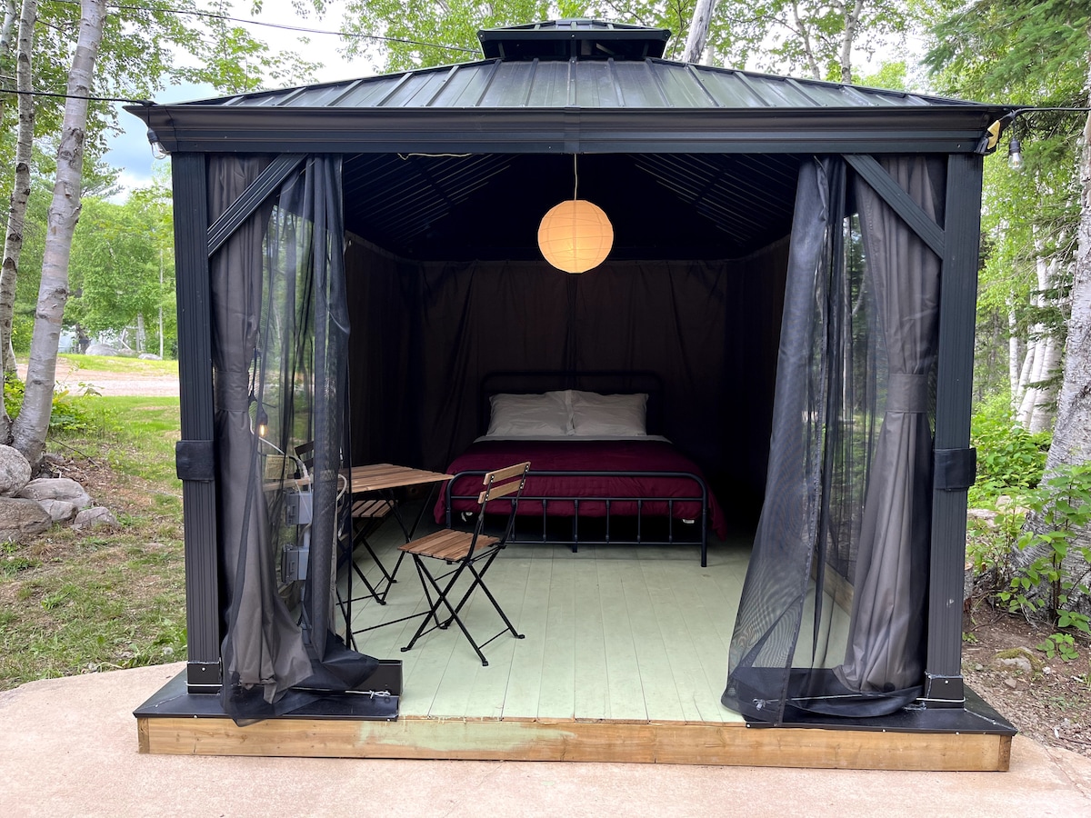 Dobrodošli v udobnem glamping umiku na Zemlji! Uživajte v odmaknjenem in zasebnem okolju našega udobnega šotorja s platnenim zvoncem za štiri leta, skupaj z zakonsko posteljo, ogrevano zunanjo prho in propanskim grelnikom za tiste hladne večere. Nahaja se le nekaj minut od znamenitega narodnega parka Cavendish Beach. Uživate lahko v miljah belega zlatega peska, slikovitih igrišč za golf, globokomorskih ribolovnih poteh, pohodniških poteh in svetovno znanih večerjah z jastogom. Uživajte v tem, kar ponuja letovišče Cavendish s te osrednje lokacije!