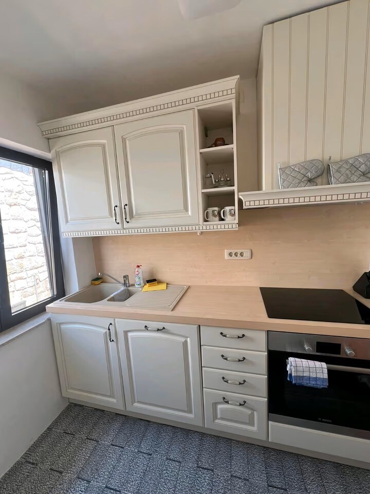 Stanovanje se nahaja v pritličju hiše z dostopom do vrta. Nahaja se na odlični lokaciji, le kratek sprehod do središča mesta in plaže. Ima svoje parkirno mesto na dvorišču hiše in veliko otroške opreme. Stanovanje je namenjeno za 3 osebe + 2 osebi. Ena spalnica z zakonsko posteljo je povezana z dnevno sobo z raztegljivim kavčem. Ločena majhna soba je dovolj za eno osebo. Stanovanje je v celoti opremljeno z vsem potrebe po udobnem bivanju.