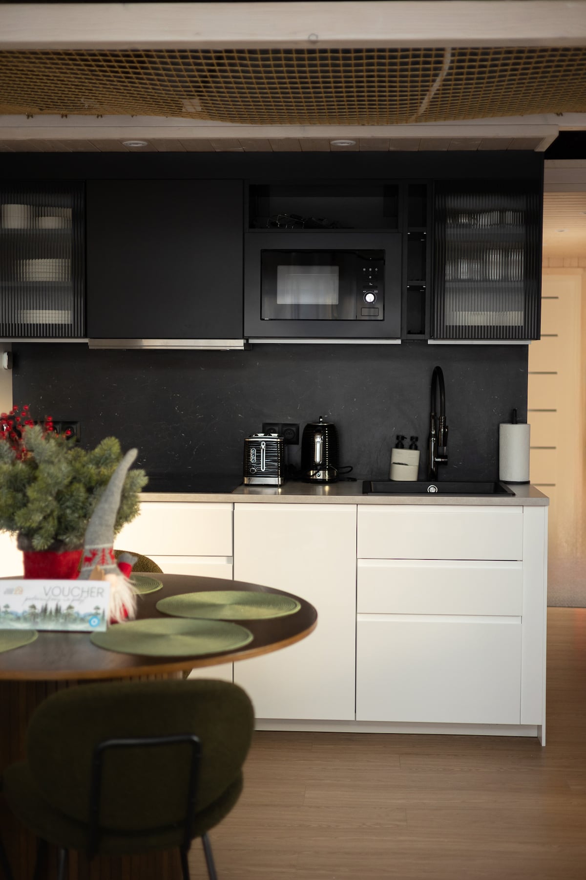 Sodobne mansardne hiške na deželi v Pieninyju, namenjene za pare ali pare z otroki. Vsaka hiška na deželi lahko sprejme do 4 osebe. Velika zasteklitev bo nudila čudovit razgled na panoramo Tatre in Pieninyja, ki jo lahko občudujete neposredno s kavča v dnevni sobi in postelje na mezzaninu. Vsaka hiška na deželi ima dnevno sobo s kuhinjsko nišo, kopalnico in mezzanine s prostorom za spanje. Hiše so ogrevane s toplotnimi črpalkami, hkrati pa imajo kamine na biološkem okusu, zaradi katerih bodo hladni večeri prijetni.