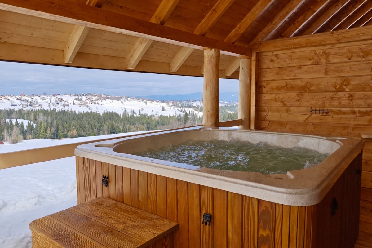 Pine Tree Chalet z masažno kadjo in pogledom na Babia Góra