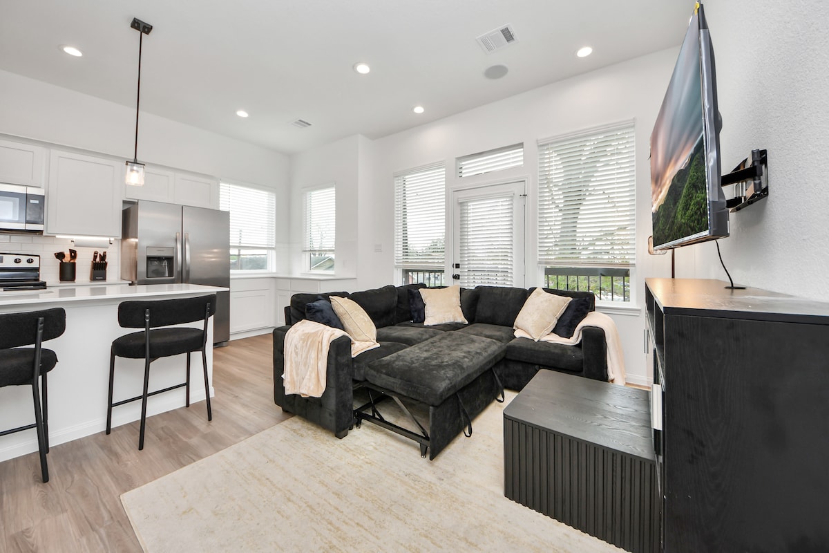 Dobrodošli v The Retreat @ NRG! Sodobno prenočišče s 3 spalnicami in 3,5 kopalnicami ima strešno teraso in garažo za 2 avtomobila. Le 1,6 km od stadiona NRG ⚽ (FIFA 2026) in nekaj korakov do železniške postaje Metro-Rail 🚆 za enostaven dostop do središča mesta, medicinskega centra, muzejskega okrožja in predela Midtown. Uživajte v odprtem bivalnem prostoru v 2. nadstropju z 3,65 m visokimi stropi, popolnoma opremljeno kuhinjo 🍳 in prostorno glavno kopalnico z globoko kadjo 🛁 ter garderobno sobo. Idealno za družine, skupine ali poslovne popotnike.