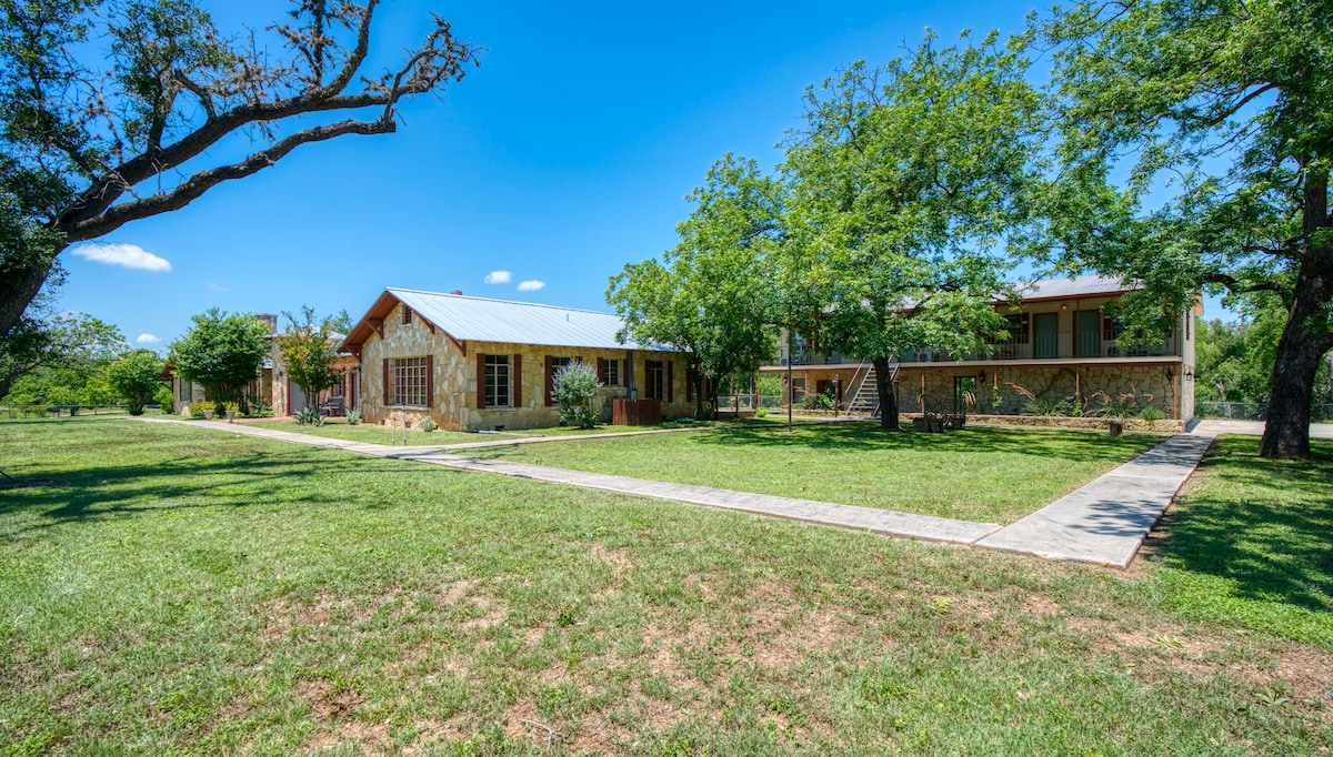 Rare 1920s large and original private ranch home on 7 acres w/direct PRIVATE access to Medina River IN BANDERA! 5 minutes from bars/restaurants/shopping fun in downtown! Very dog friendly with applicable fees. Certified guest favorite! Read our 100+ 5 STAR REVIEWS! Perfect for large or small groups. Main house base price= 8 GUESTS/4 BEDROOMS/4 BATHS! At additional fees are 5+private bedrooms/baths available to you as needed. Max capacity is 25 (NOT @BASE PRICE). This is a rare opportunity!