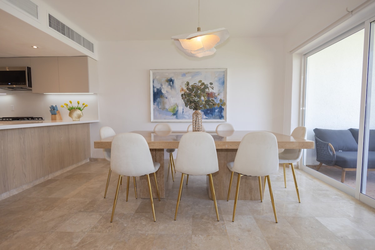 To stanovanje se nahaja v stanovanju Quinta Pacifica, za katerega je značilen mir in lepota. Všeč vam bo mehiška dekoracija, imamo dve prostorni spalnici z dvema popolnima kopalnicama, popolnoma opremljeno kuhinjo in odličnim dnevnim prostorom z lepimi balkoni, z jedilno mizo za prijeten zajtrk na prostem, če želite. Skupni prostori so dobro vzdrževani, imate dostop do plažnih palap in visečih mrež v vrtnih prostorih, bazen pa je ogrevan.