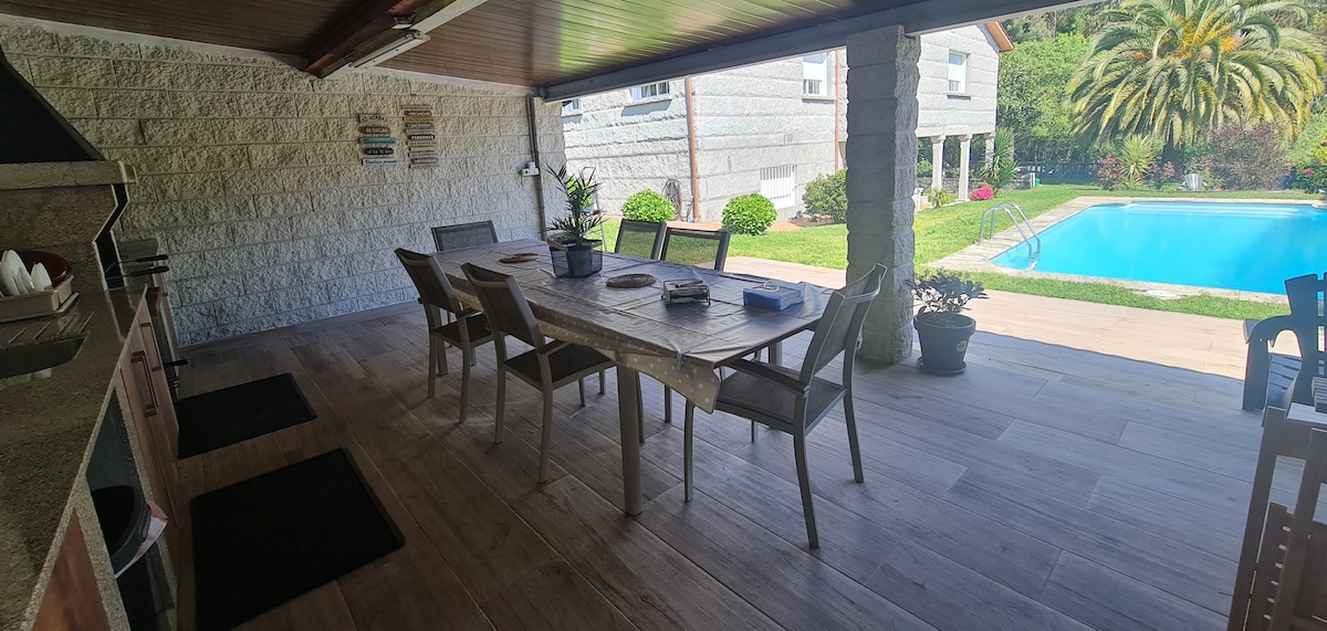 Planinski dom na podeželju, popolnoma nov in sodoben, 1200 m vrta z bazenom, žarom in mizo za namizni tenis. Idealno za pare, družine in skupine. Zelo dobro povezan s hitro potjo do plaž (Sanxenxo, A Lanzada, O Grove, Combarro, Isla de Arousa...) in mesti, kot so Santiago de Compostela. Nahaja se 5 minut od mesta Pontevedra. V bližini je konjeniški center in več furanchosov (tipična hrana) za uživanje v hrani. Možnost nastanitve do 12 oseb.