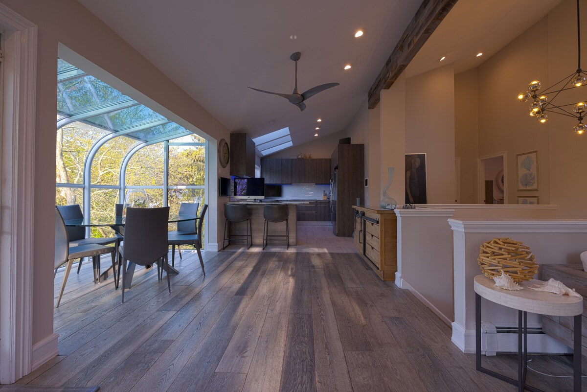 Življenje v odprtem konceptu. Stropi katedrale. 1 spalnica, kopalnica. Zasebno parkirišče. Terasa. 5 minut od vlaka, 15 minut do letališča MacArthur. Blizu Stony Brook, južne obale oceanskih plaž in severne obale Long Islanda. Popolno, če se nameravate odpraviti proti vzhodu do vinskih kleti!