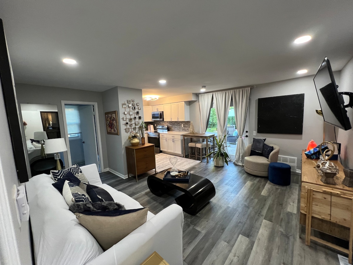 Sedite in se sprostite v tem udobnem, elegantnem prostoru v neposredni bližini središča mesta - Royal Oak, Birmingham, Clawson in Troy. Nahajate se v varni in zeleni soseski, v 10 minutah od nekaterih odličnih restavracij, barov, pivovarn in zabavnih dejavnosti na območju podzemne železnice Detroit. Odlično za ljudi, ki iščejo popolnoma opremljeno kratkotrajno bivanje s sodobnim značajem in čistim dizajnom.