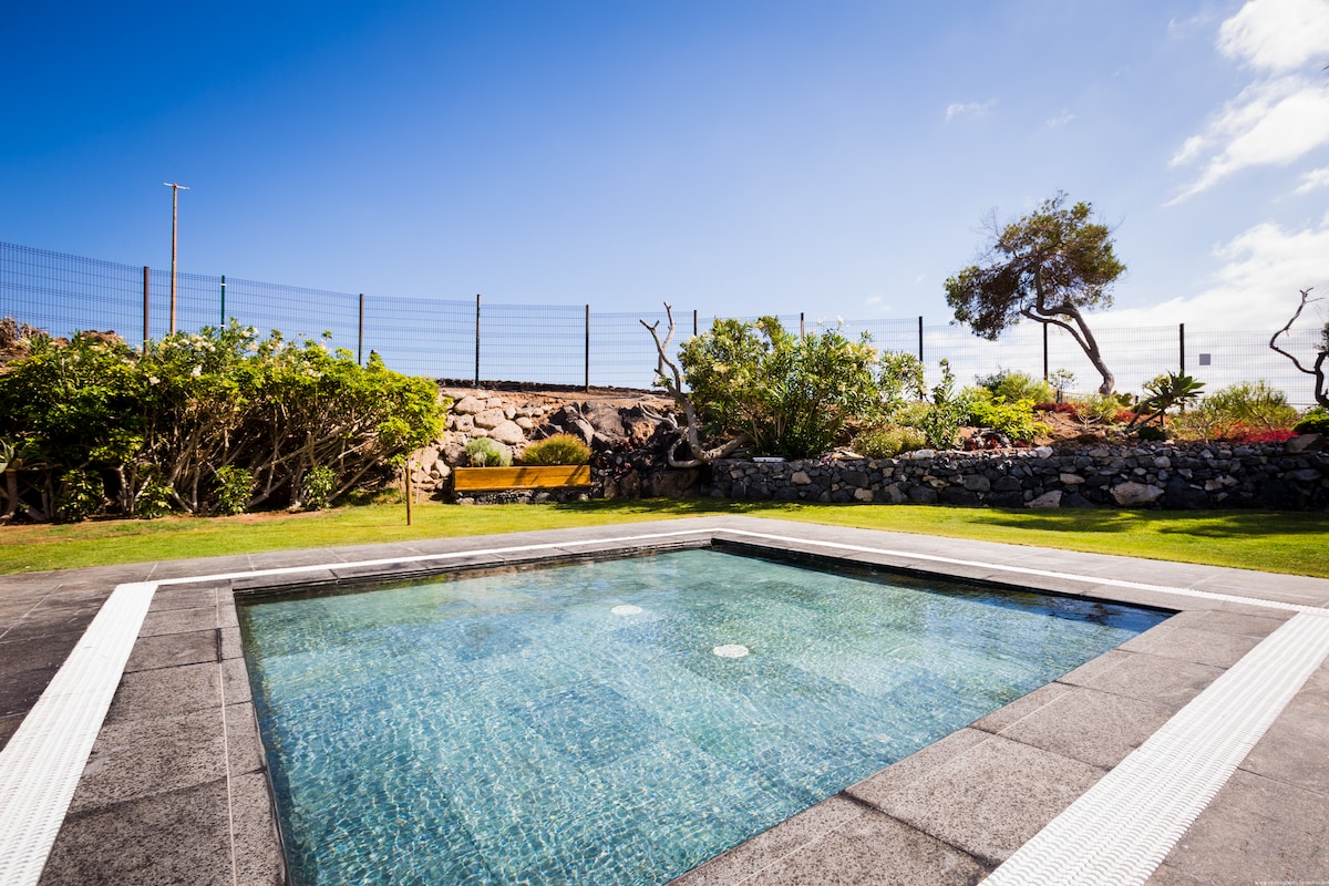 Prenočišče v kanarskem slogu s pogledom na morje, teraso in bazenom