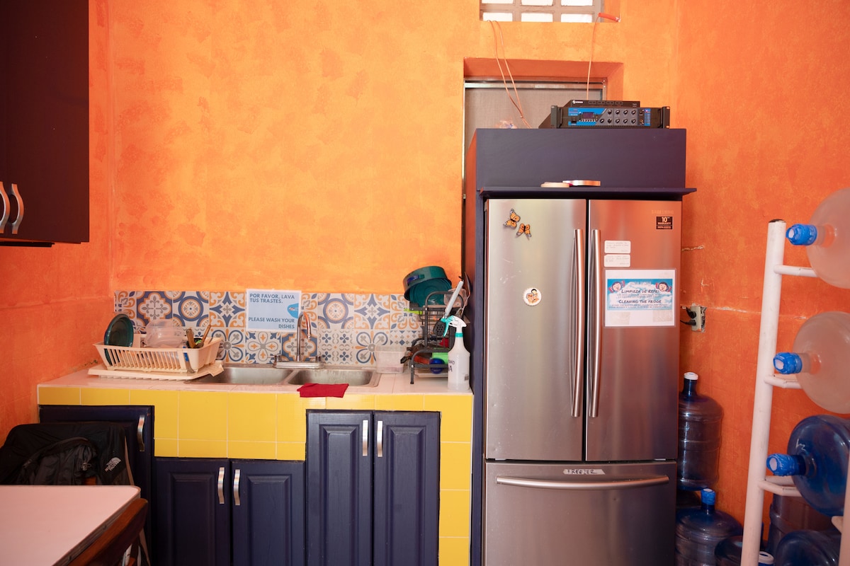 Bienvenido a tu oasis en el corazón de Oaxaca. Tu acogedora habitación en el segundo piso ofrece dos camas matrimoniales para tu comodidad, un baño privado y un balcón privado. Además, tendrás acceso a nuestras áreas compartidas, incluyendo una sala de estar acogedora, una zona de trabajo funcional y una cocina en planta baja. Experimenta la auténtica vida oaxaqueña mientras te sumerges en la riqueza cultural que ofrece esta vibrante ciudad. ¡Tu escapada perfecta comienza aquí!