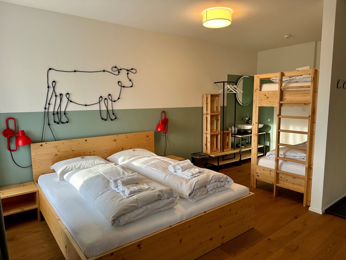 Erlebe das Emmental – und verbringe die Nacht in einem liebevoll eingerichteten Studio. Auf dem Areal der Emmentaler Schaukäserei kommst du in den Genuss der Attraktionen auf Platz. Zudem kannst du im hauseigenen Restaurant (Tagesbetrieb) und im Laden die verschiedensten regionalen Spezialitäten erwerben. Luzern, Bern und die Region Thunersee (Top of Europe) sind nur ca. eine Autostunde entfernt.