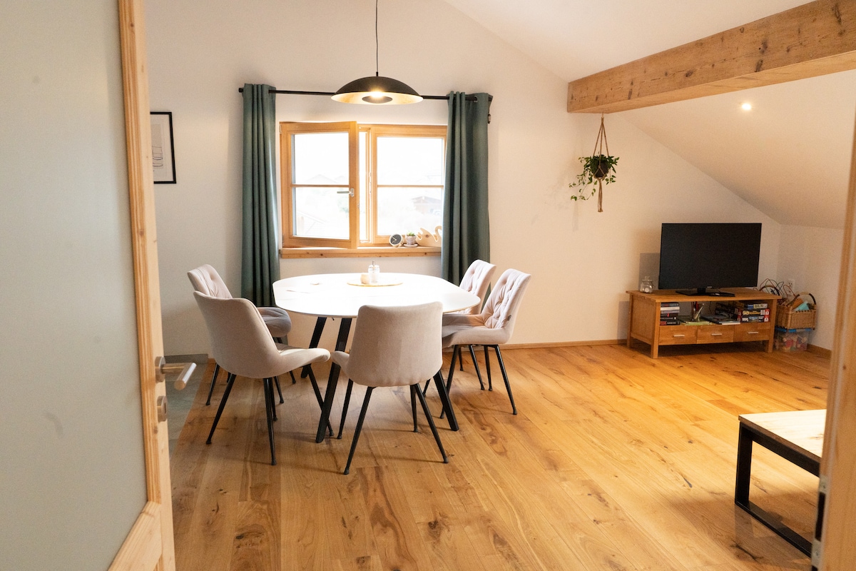 NOTE: Pool currently closed for renovation (Sauna remains open). Panorama Escape at Lake Rottachsee Prime 42 sqm apartment (2–4 guests) in Petersthal: - Lake View: Direct views of the lake & Mt. Grünten. - Group Tip: Located on the same floor as our "Village View" apt. - Sustainability: CO2-neutral heating via local district network. - Wellness: Pool & Sauna (coin-op) in the building. - Location: Near Neuschwanstein & Allgäu Alps. - Extras: WiFi, table tennis & laundry room.