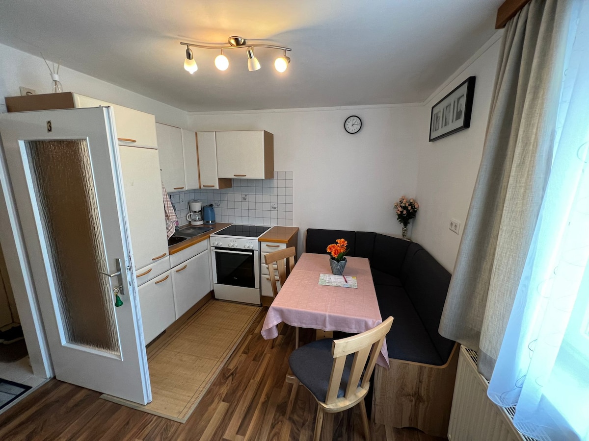 Čudovito, udobno stanovanje na podeželju. Lokacija nad mejo megle v bližini čudovitega jezera Attersee. Čudovite možnosti za pohodništvo in kopanje v neposredni bližini. Tek na smučeh tik pred hišo. Majhna žičnica v bližini. Do namestitve je mogoče priti samo z avtomobilom. Jezero Attersee je oddaljeno 4,5 km, jezero Mondsee pa 12 km. Salzburg 41 km, Hallstadt 59 km. Žar in zajtrk na zahtevo kadarkoli. Zajtrk po želji: 111 na osebo.