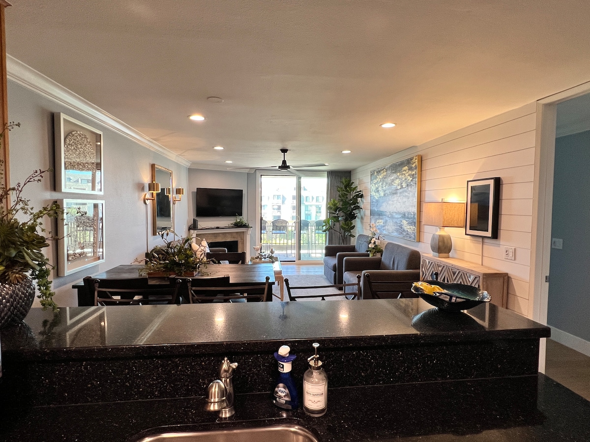 Terasa na Pacifiku ima čudovit razgled na ocean iz dnevne sobe, glavne spalnice in balkona. Na lep dan v Oceansideju lahko uživate v jadrnicah, ki se peljejo po Pacifiku s kavča! Če se želite sprostiti in napolniti baterije, uporabite bazene in zdravilišča v stavbah ali pa uživajte v 5 min hoje do plaže + pramen. Uživajte v delu z internetom 200 mb/s in posebno mizo v spalnici. Naše stanovanje je vogalna enota v zgornjem nadstropju (dostopna z dvigalom) stavbe G v vasi North Coast Village.