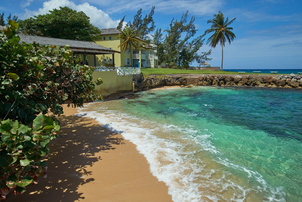 Umaknite se v to prostorno, prenovljeno enosobno stanovanje pred oceanom. Nahaja se v mirnem kompleksu na čudoviti severni obali Jamajke. Ta ograjena namestitev ob obali ima 24-urno varnost in dostop do spektakularne bele peščene plaže Mahogany Beach 3 minute od stanovanja z osupljivim razgledom na kristalno čisto Karibsko morje. Mesto Ocho Rios je peš oddaljeno od trgovin, restavracij, supermarketov ter obrtnih in sadnih tržnic.