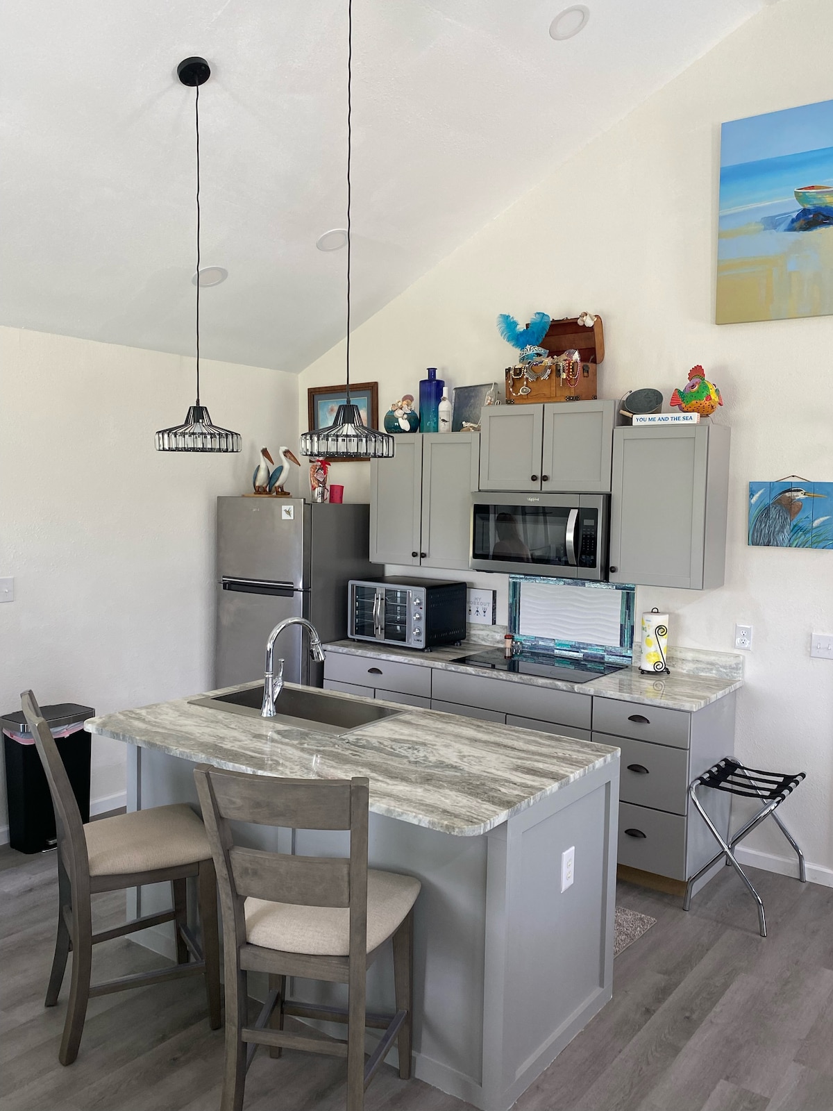 Uživajte v naši prijetni in sproščujoči, popolnoma prenovljeni sodobni kmečki hiši. V bližini boste našli restavracije, bare, parke, muzeje, galerije, prizorišče za prirejanje dogodkov, marino in plažo v središču mesta s sprehajališčem. Čudoviti razgledi na ptice s terase. Novi aparati, sodobna kopalnica z masažno kadjo, zatemnitvene zavese, 2 televizorja HD, storitve Roku/pretakanje, USB vhodi, pisarniški prostor z Wi-Fi omrežjem iz optičnih vlaken in raztegljiv kavč. Zasebna terasa z zunanjim vročim/hladnim prhanjem, gugalnico, bistro garnituro, žarom, ventilatorjem za meglico in vrtom z zelišči/opraševalci.
