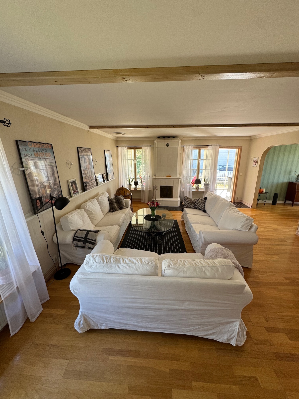 Udobna hiška na deželi s 3 spalnicami, vse z novo pripravljenimi zakonskimi posteljami. V pritličju je kuhinja, dnevna soba in kopalnica, za hišo pa so udobni izkopani ribniki. Na kmetiji je veliko srčkanih živali, ki jih lahko hišite. Brezplačno parkiranje. V kmečki trgovini lahko kupite lokalno hrano. Živimo v veliki beli hiši, kjer se prijavite, ko prispete. Pred prihodom lahko naročite zajtrk. 120 SEK/ osebo. Postreženo v isti hiši 7-9.00. V sklopu namestitve je še ena hiša, ki je najeta tudi ločene terase.